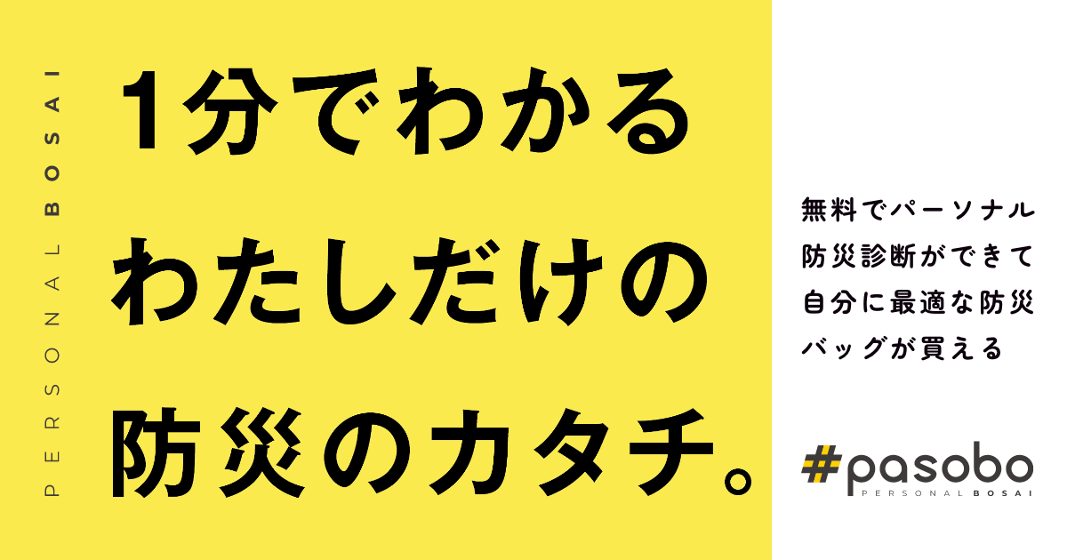 パーソナル防災サービス #pasobo - あなたにぴったりな防災をお届けします。 pasobo(パソボ)は、家族構成や住所、住んでいる建物の種類、ライフスタイルなど幾つかの質問に回答するだけで、世帯環境における災害リスクや、全国のハザードマ...